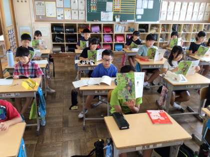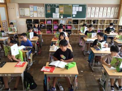 金子みすず作「わたしはふしぎでたまらない」を4年生が声をそろえて音読していました。