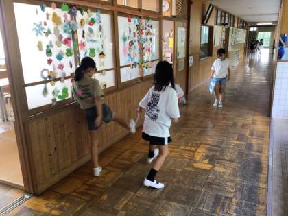 100mは教室からどこまでか調べよう 公開日 2024/09/09 更新日 2024/09/09 第3学年の様子 100mは1mの100個分、50cmの200個分を学習し、100mでどこまで行けるか歩いて確かめました。 3年