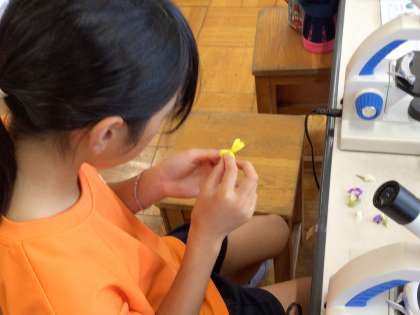 黄色い花の花粉は三角形でした。 それぞれの花で花粉の形が全く違うことが分かりました。