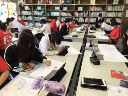 それぞれ構図が面白く、仲間と相談しながら描く人、黙々と一人で描く人、担任のサポートを自ら志願して一緒に構図を作る人など、学び方を選んで作品を作っています。