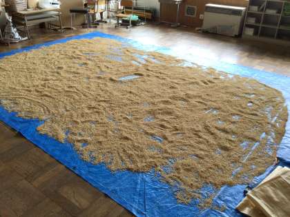 ビニールシートいっぱいにお米が広げられています。