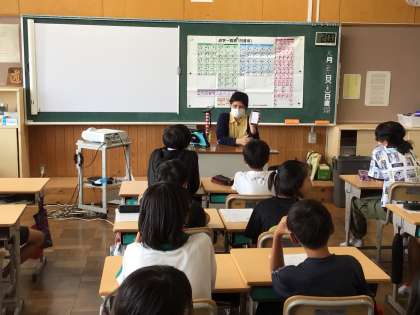 全盲の方を講師に迎え6年生が点字を勉強しました。