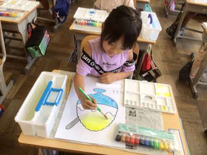 9/26 図工「おいしいかき氷」(1年) 公開日 2024/09/26 更新日 2024/09/26 第1学年の様子 好きな色を1色選んで、水の量を変えながらかき氷を完成させました。美味しそうなかき氷が描けて、「お腹が空いちゃった!」という声が聞こえました。