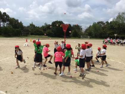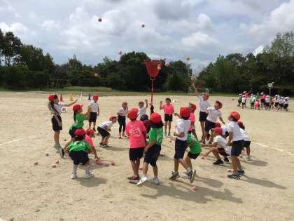 玉入れの練習もしました。 赤組です。