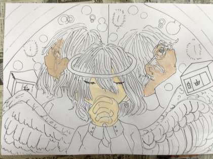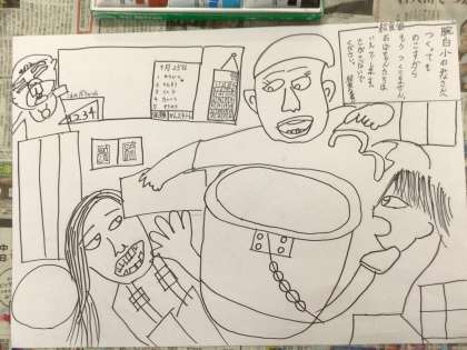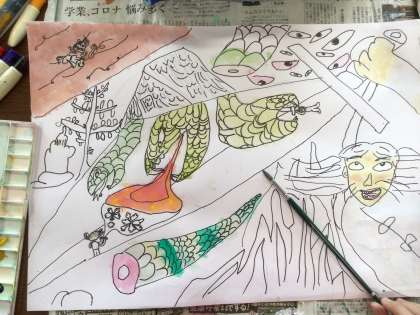 まだ途中ですが、画用紙いっぱいに楽しそうな絵が書かれています。