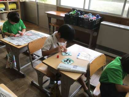 先生たちと来年度の1年生にプレゼントするあさがおの種封筒が完成しました。心を込めて作りました。プレゼントする日が楽しみです。