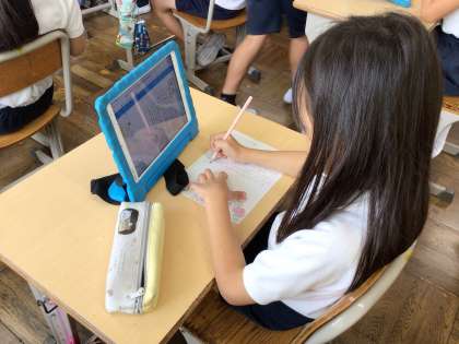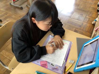 総合的な学習の時間における環境学習で、日頃からお世話になっているアイシン化工さんにお礼の手紙を書いています。先日は工場見学もさせていただき、子どもたちはその時の感想や学んだことを、手紙で伝えられるように内容を真剣に考えています。