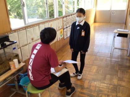 一人ひとりに前期に頑張ったことと、後期の目標を伝えました。