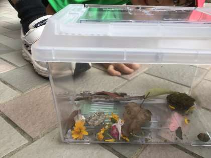 秋の虫を探しに出かけました。バッタ、チョウチョを見つけ捕まえました。飼って育てるにはどんなお部屋がいいのかな?餌は何かな?明日、調べます。