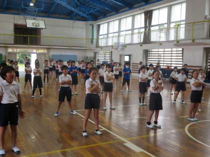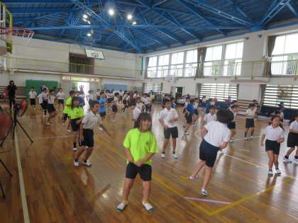 よっちょれの練習の様子です。少しずつ踊りを覚えています。