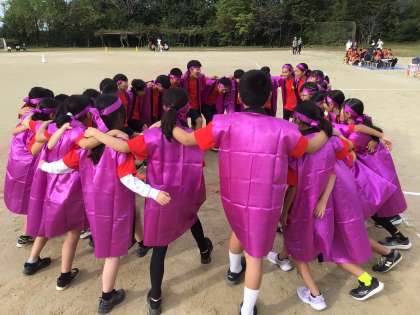 6年生が円陣を組み、団結を高め、気合を入れました。