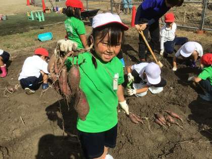 さつまいも掘りをしました。手やスコップで傷つかないように優しく掘りました。たくさん掘れたので、しばらく置いて、学校でみんなで食べる予定です。