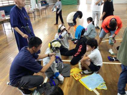 福祉教育の一環で高齢者体験を行いました。 動きにくさや見にくさを体験しました。