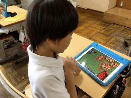 ICT支援員さんが来校し、マインクラフトでプログラミングをする方法を学習しました。前回の授業の時はエージェントを使って階段を作りましたが、今回はレッドストーンを使ってスイッチを含んだ回路を作りました。子どもたちは慣れた手つきで操作を進めていて、さすがだなと感心しました。