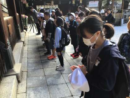11/6 6年生 修学旅行34 公開日 2024/11/06 更新日 2024/11/06 校長室から 二礼ニ拍手一礼の作法でお参りしました。 ガイドさんから左手は神様につながる手なので、少し上にあげるということを教わりました。 校長