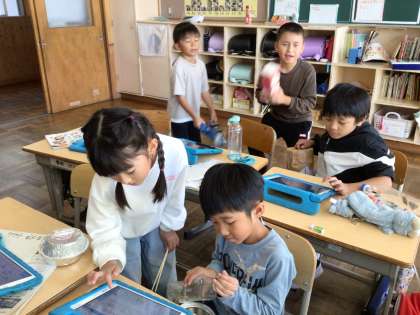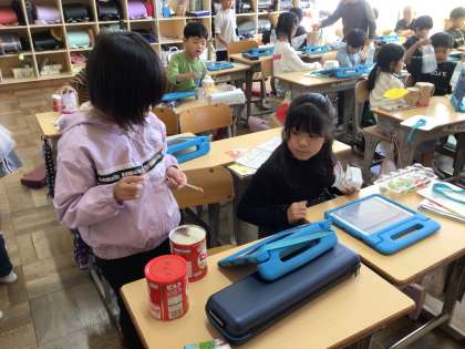 11/7 おまつり音楽 公開日 2024/11/07 更新日 2024/11/07 第2学年の様子 くり返しのあるリズム音楽作りをしました。 発表ノートでペアでリズム音楽を作った後、 手拍子でやったり、図工「音作りフレンズ」で作った楽器で奏でたりしました。 2年