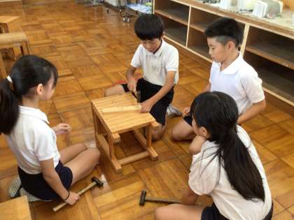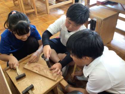 11/12 「ギコギコトントンクリエイター」その2 公開日 2024/11/12 更新日 2024/11/12 第4学年の様子 金槌を使う練習をしました。3年生の時に釘打ちの経験があるためか、とても器用に作業できていました。 4年
