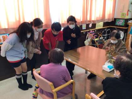ふじのさと訪問1回目 公開日 2024/11/13 更新日 2024/11/13 第6学年の様子 総合的な学習の時間で学んだ高齢者体験を生かして、地域のデイサービス「ふじのさと」へ訪問し、交流会をしました。 短時間で計画し、実行しました。利用者の方はとても喜んでいた様子でした。 6年