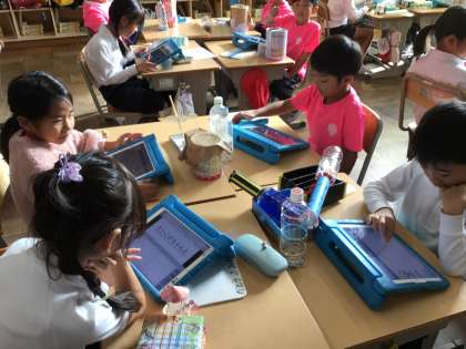 11/13 図工の様子 公開日 2024/11/13 更新日 2024/11/13 第2学年の様子 昨日の図工の学習で、音作りフレンズの鑑賞をしました。 タブレットをつかって、友達作品のいいところをまとめました。 その後、音楽に合わせて楽器を奏でました。 2年