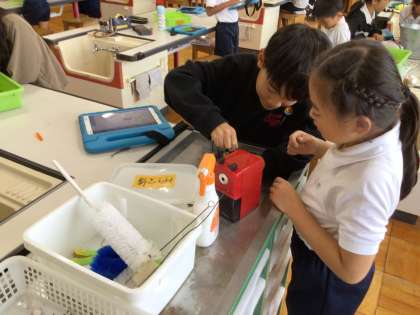 身の回りのものは電気を通す? 公開日 2024/11/15 更新日 2024/11/15 第3学年の様子 理科の実験の様子です。「金属は電気を通す」と学習した後、じゃあ筆箱は?このキーホルダーは?様々な疑問が出てきました。 思わぬ発見もあり、キラキラしてるから金属だと思ったのに、じゃあ何でできてるの? 新たな疑問が湧いてきます。 3年
