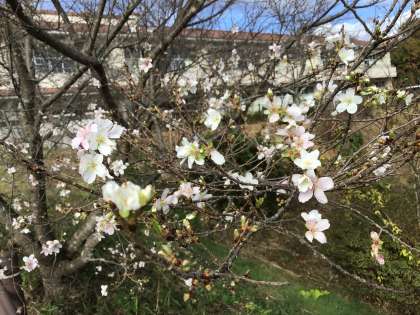 小原地区の四季桜が話題になっていますが、飯野小の四季桜もきれいに花を咲かせています。