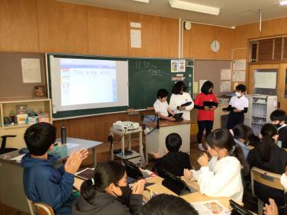 生産地についての紹介をSkyMENU発表ノートを使って、グループでプレゼンテーションをしました。