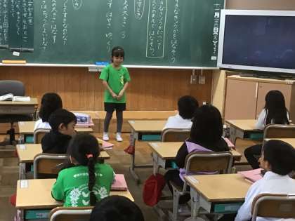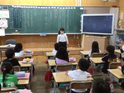 11/26 国語「すきなきょうかをみんなにはなそう」(1年) 公開日 2024/11/26 更新日 2024/11/26 第1学年の様子 昨日はペアで伝え合いましたが、今日は一人一人クラスみんなに話しました。みんなに伝わるように声の大きさや話す速さに気をつけて話しました。聞いている人は、その教科が好きな理由は何かに注目して聞きました。