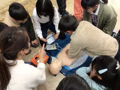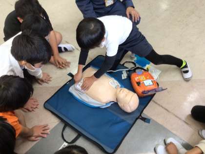 心臓マッサージ役とAED役を分業して練習しました。
