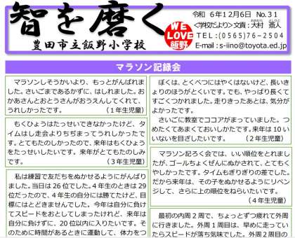 「学校だより 智を磨く No.31」を発行しました。