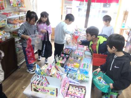 12/11 校外学習 買い物(1年) 公開日 2024/12/11 更新日 2024/12/11 第1学年の様子 駄菓子屋さんで1人200円まで買い物しました。いくらか計算しながら、欲しい駄菓子を選びました。ぴったり200円の子、オーバーして減らす子、少なくて選び直す子、様々でした。