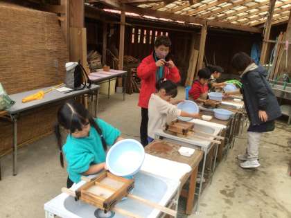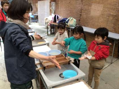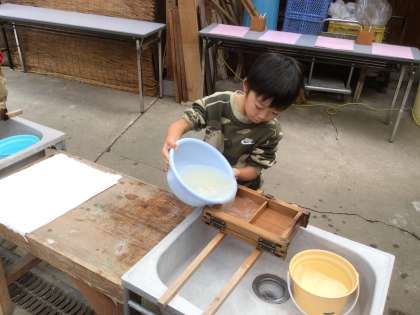 紙すきは、葉書を2枚作りました。1枚は無地、1枚はもみじの葉を入れました。