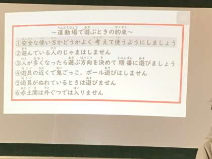 この機会に、体育委員会が中心となり、運動場で安全に遊ぶためのルールを見直しました。