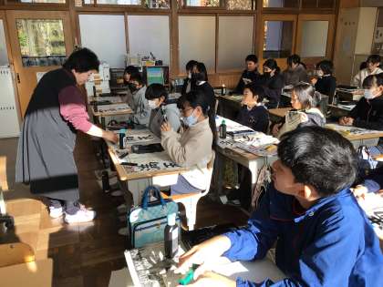 書き初めボランティアの先生と練習