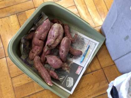ひまわりの畑では、こんなに大きなサツマイモが獲れました。