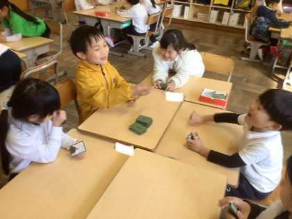 1/8 生活「昔遊び 坊主めくり」(1年) 公開日 2025/01/08 更新日 2025/01/08 第1学年の様子 生活科の学習で、昔の遊びを体験していきます。今日は、「坊主めくり」をグループ毎に行いました。とても盛り上がりました。