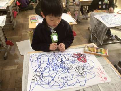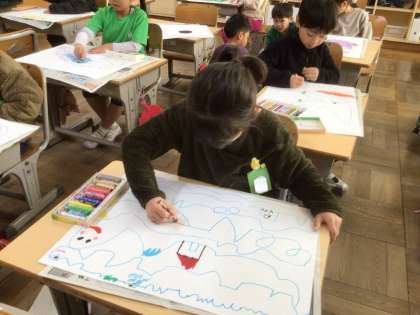 1/9 図工「せんの ぼうけん」(1年)