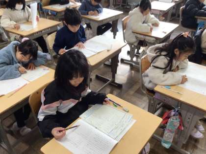 1/15 3年生 学力テスト 公開日 2025/01/15 更新日 2025/01/15 校長室から 今日と明日、全学年で学力テストを行います。 3年生から問題用紙と解答用紙が別々のものになります。 1時間目の国語のテストを頑張っていました。 校長