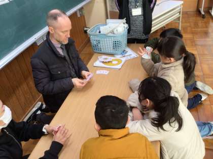 1/16 ひまわり外国語活動 公開日 2025/01/16 更新日 2025/01/16 校長室から ひまわり学級でALTが英語の授業を行いました。 英語でカードゲームのルールを説明しました。 ルールを理解して、英語を使ってゲームをしました。 アルファベットを書く練習もしています。 校長