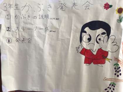 3年生が藤岡歌舞伎の皆様と保護者に向けて、歌舞伎の発表会を行いました。