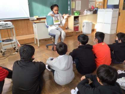 1/24 6年生 読み聞かせ 公開日 2025/01/24 更新日 2025/01/24 校長室から 去年のALTが読み聞かせボランティアに来てくれました。 思いがけない再会に6年生は大喜びでした。 今日は英語の絵本の読み聞かせでした。 校長