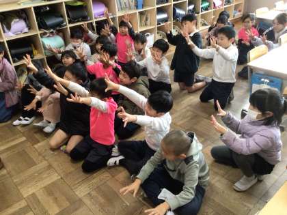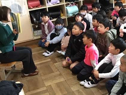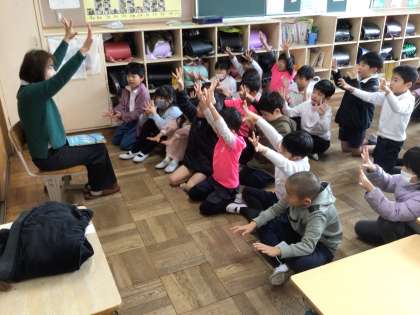 2年生は読み聞かせの後、手遊び歌を楽しみました。 笑顔いっぱいでした。