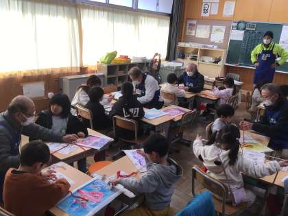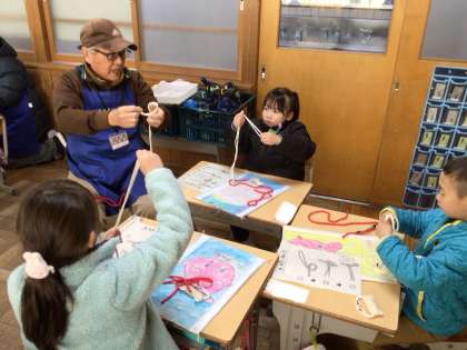 先週に引き続き、ものづくりサポートセンターの方が来てくださり、紐の結びつけて和凧を完成させました。