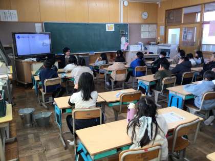 ICT支援員の先生にパワーポイントの機能を教えていただきました。アニメみたいに図形を動かせることに大興奮でした。