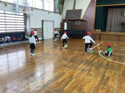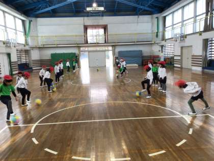 2/4 体育「ボールけりあそび」(1年) 公開日 2025/02/05 更新日 2025/02/05 第1学年の様子 今週から体育ではボールけりあそびの学習をします。今日は、悪天候のため、体育館でボールタッチやドリブル鬼ごっこ、パスの練習をしました。