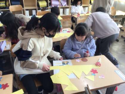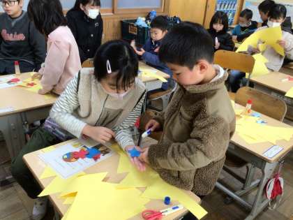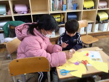 6年生を送る会に向けて5年生が教室に来てくれて一緒に準備をしました。何ができたでしょうか?