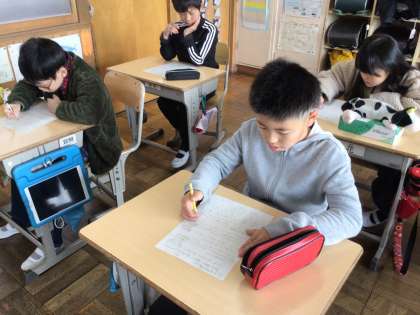 2/17 「ブックイズ」 公開日 2025/02/17 更新日 2025/02/17 第4学年の様子 図書委員会の試みで「ブックイズ」というものが実施されました。指定された本の中からクイズが出され、本を読んでいた人が有利になるものです。実際に数冊本を読んでいた人がおり、解き終わった後は「あれなんだったけ?」と話す様子がみられました。 4年