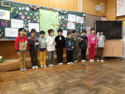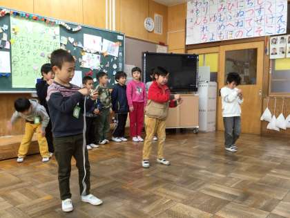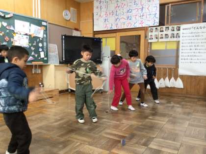 2/20 生活「昔遊び発表 こま回し」(1年)