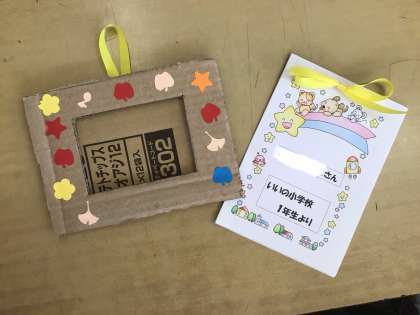 子どもたちが手作りした写真立てと、お手紙をプレゼントしました。