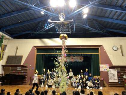 6年生代表がくす玉を割りました。