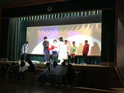 3/7 6年生 卒業演劇3 公開日 2025/03/07 更新日 2025/03/07 校長室から エルコスへの復讐を企む職員に生徒がそそのかされ、学園の金庫をエルコスに開けさせ職員に大金を奪われてしまいました。 子ども達とエルコスは力を合わせて戦い、大金を取り戻しました。 校長